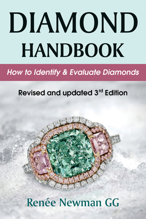 Diamond Handbook: A Practical Guide to Diamond Evaluation, 3rd Edition Using close-up photos, it expands on the information in the Diamond Ring Buying Guide and covers additional topics such as diamond grading certificates, light performance, fancy colored diamonds, new cut grading systems, branded diamonds, diamond recutting, antique diamonds & jewelry, and diamond fluorescence. The Diamond Handbook is geared to trade professionals, serious diamond buyers, gemology students and people who want more information than what's on the Internet and in the Diamond Ring Buying Guide.$19.95 ISBN 978-0-929975-53-5 See details and reviews Buy Now |