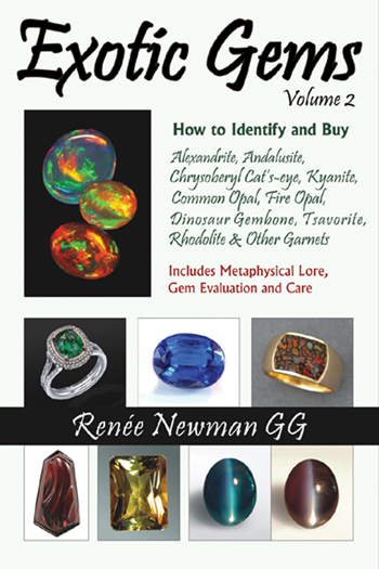 Exotic Gems, Volume 2: How to Identify and Buy Alexandrite, Andalusite, Chrysoberyl Cat’s-eye, Kyanite, Common Opal, Fire Opal, Dinosaur Gembone, Tsavorite, Rhodolite & Other Garnets Has more than 400 photos of these stones in the rough, cut, magnified, and mounted in distinctive jewelry. Shows the cutting process of a garnet and how to evaluate and identify the stones in the book. Includes information on their history, metaphysical lore, geographic sources, treatments, imitations and gem care. $19.95, ISBN 978-0-929975-45-0 See details and reviews Buy Now |