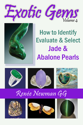 Exotic Gems, Volume 4: How to Identify, Evaluate and Select Jade and Abalone Pearls Explains with color photos the price factors and identifying traits of jade and abalone pearls. Jade is shown shown not only loose but also in jewelry, in the rough and as beads. Fun facts, historical anecdotes, geographic sources, gem treatment information, cutting sequences, advanced identification methods and tips on gem care are included along with diagrams and tables to aid in identification and evaluation. $19.95, ISBN 978-0-929975-50-4 See details and reviews Buy Now |