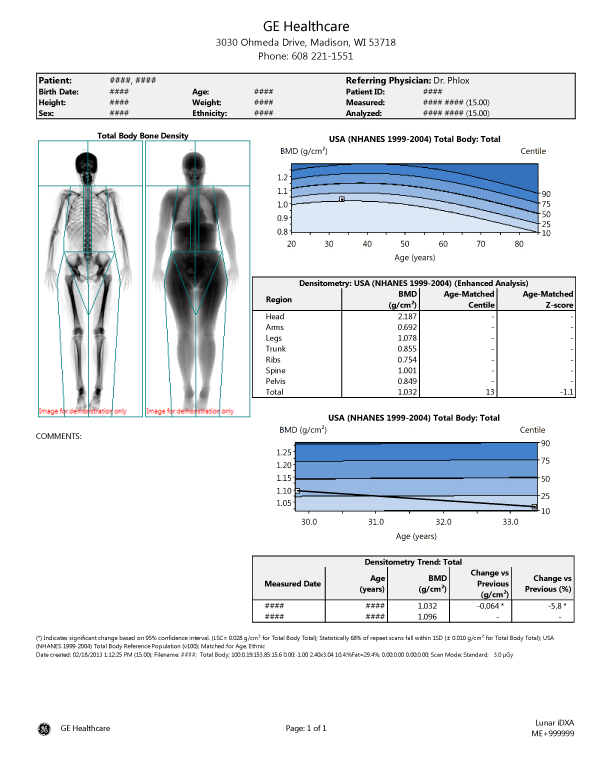 Hologic DXA Bone Density Report Hologic DXA Body Composition Report Mindways QTC Bone Density Report General Sample Reports Web Page